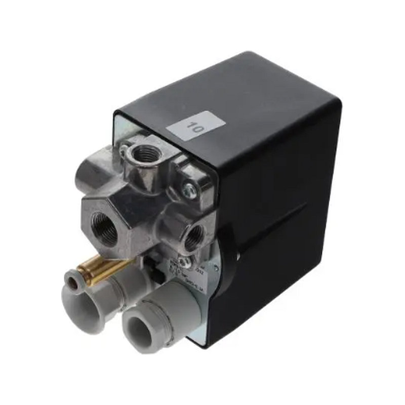 Pressostato trifase 4 vie 3/8″, 6,3A, 8–10 bar. Affidabile e facile da installare, perfetto per compressori trifase.